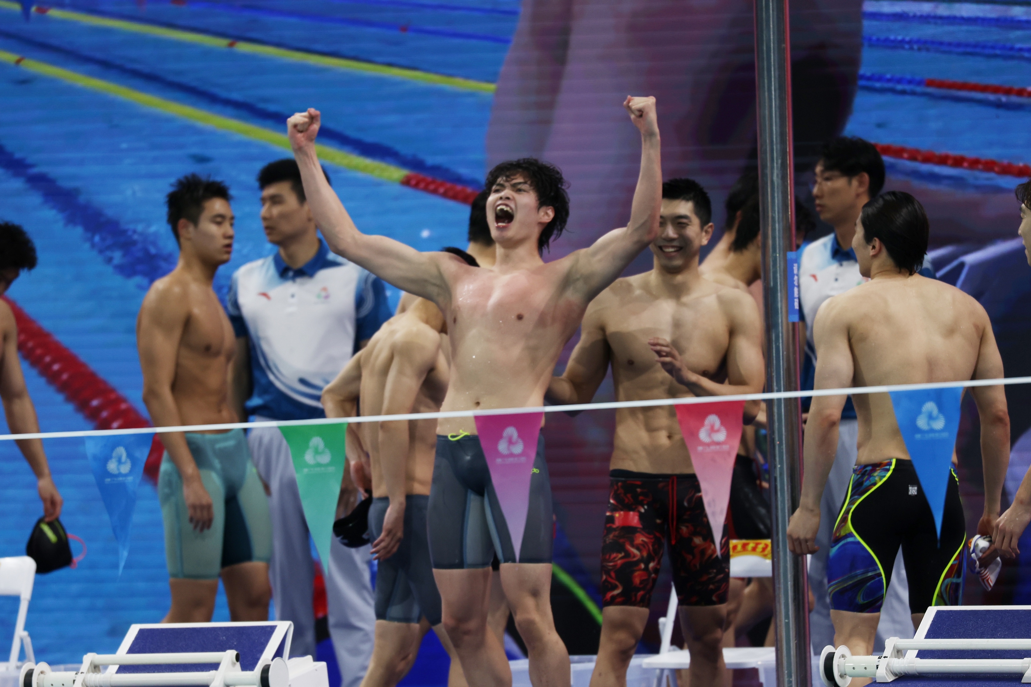 第三棒孙佳俊作为巴黎奥运会中国接力队蝶泳选手,展现出国际级水准,将领先优势扩大至2.5秒以上。最后一棒徐海博顶住压力,这位男子400米自由泳银牌得主成功守住优势,助力湖北队率先触壁。